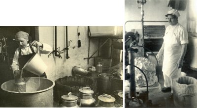 Mejeristparret Petersen i arbejde på mejeriet.
