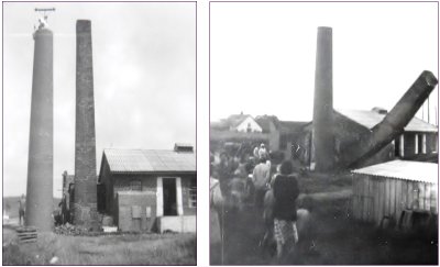 Ny skorsten bygges op, den gamle væltes